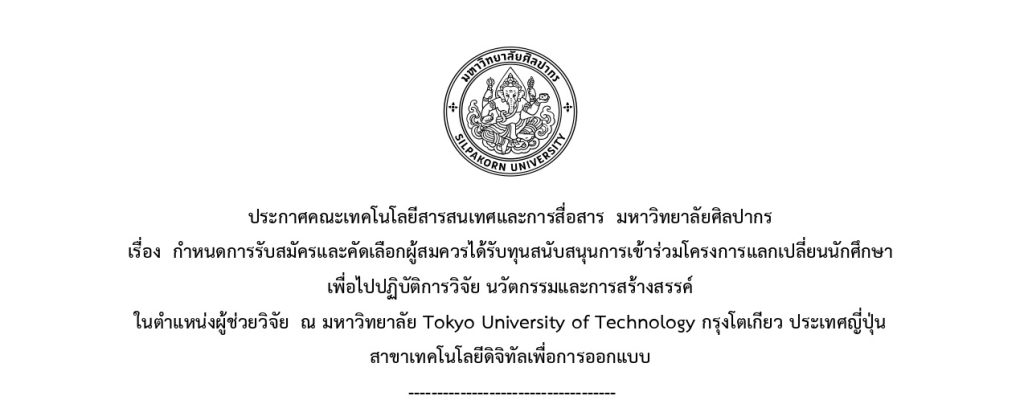 awards ประกาศคณะเทคโนโลยีสารสนเทศและการสื่อสาร มหาวิทยาลัยศิลปากร เรื่อง กำหนดการรับสมัครและคัดเลือกผู้สมควรได้รับทุนสนับสนุนการเข้าร่วมโครงการแลกเปลี่ยนนักศึกษาฯ